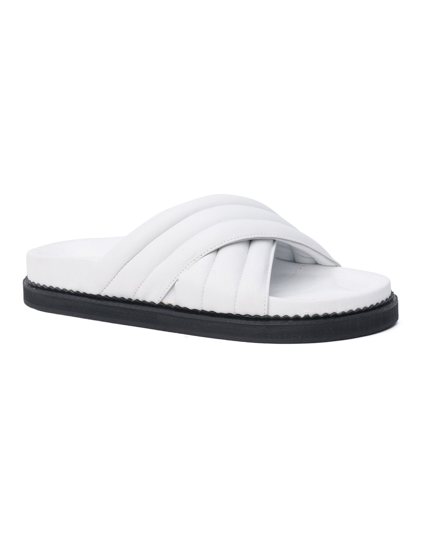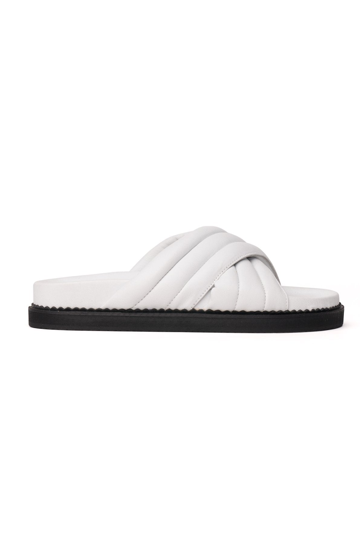 The OSKA Slide, designed and made by The Bali Tailor features a quilted cushioned crossover strap, that moulds comfortably over the foot. Soft arched contour supported sole for extra comfort.
