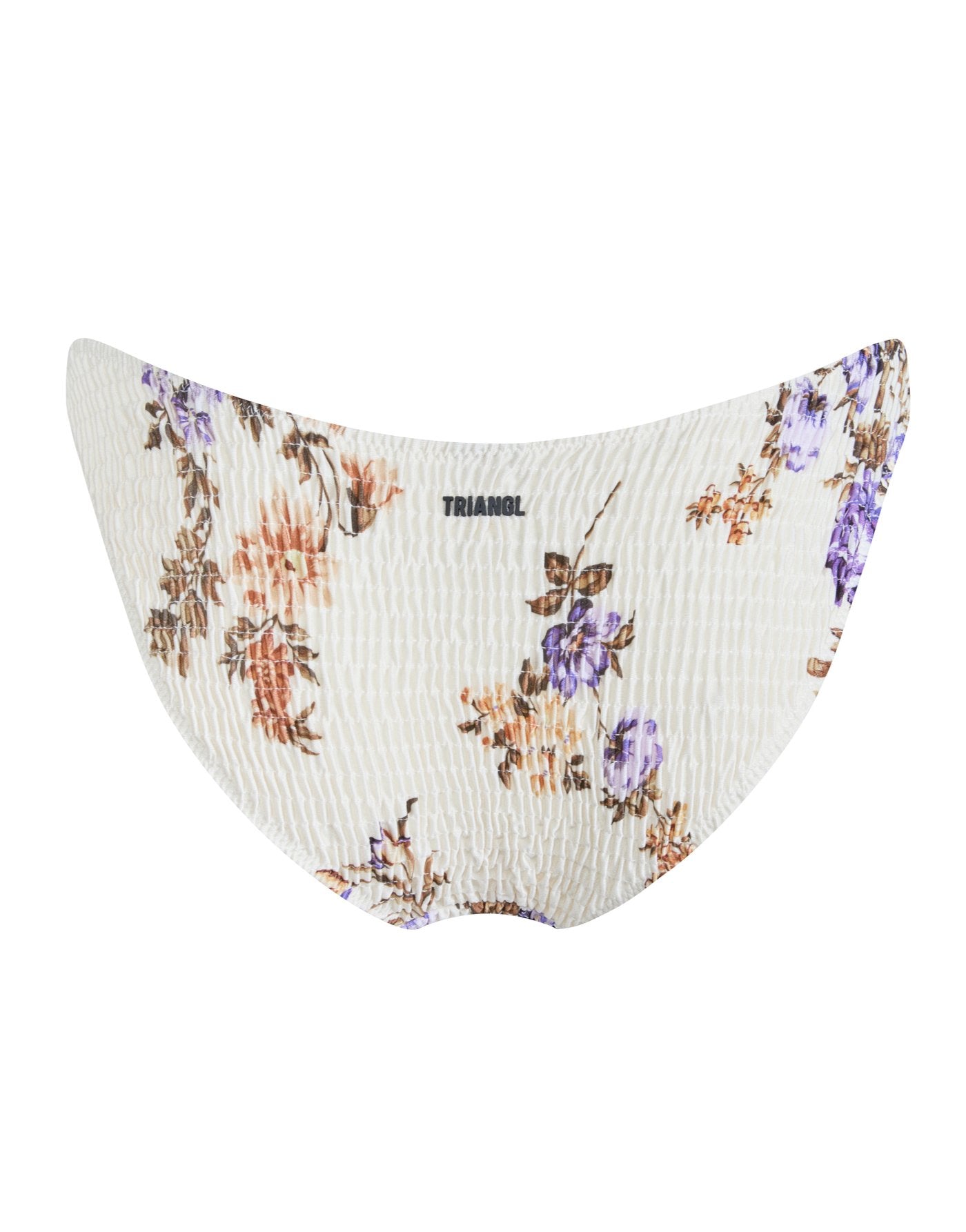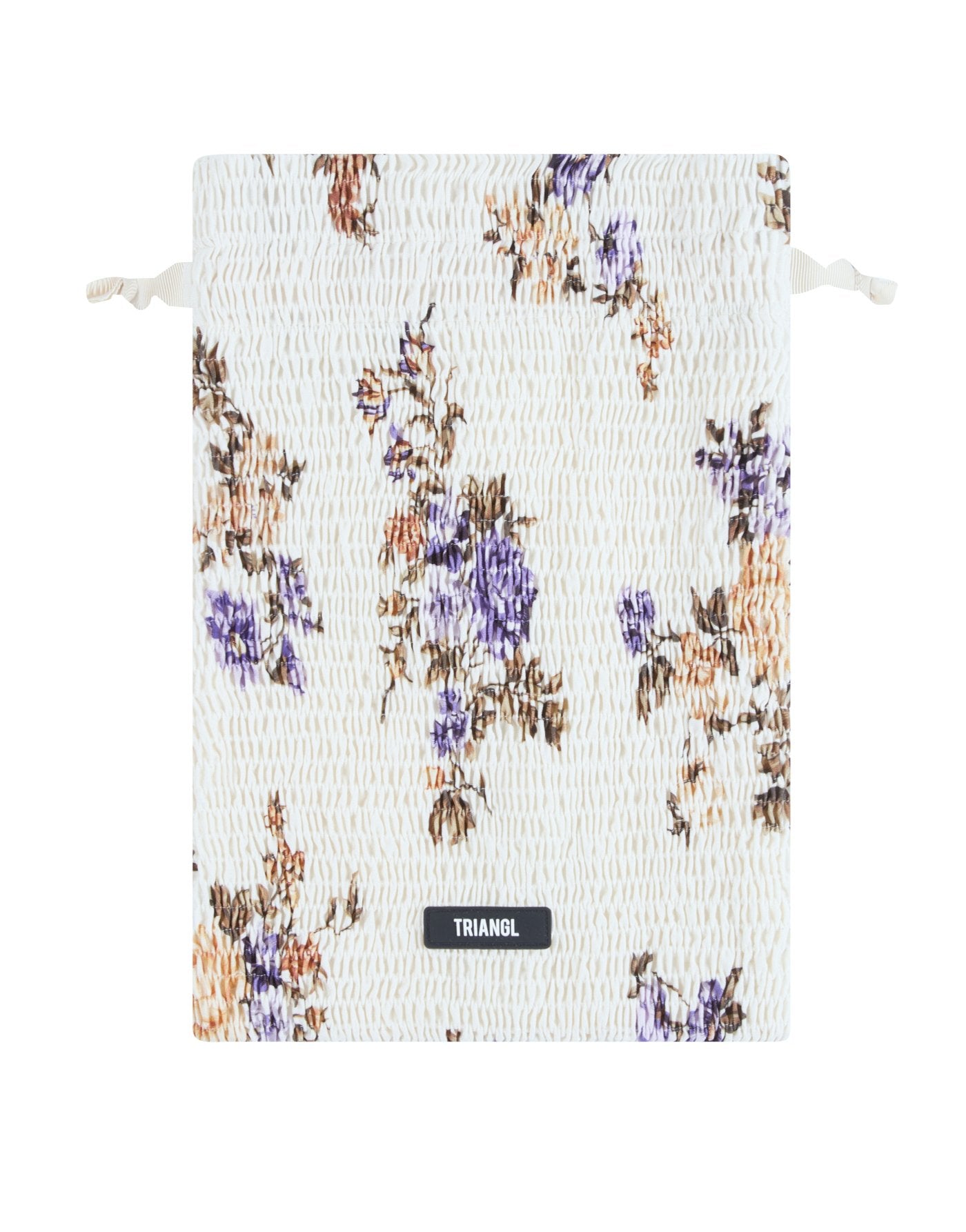 A ruched bra style top with matching high waist bottoms in white floral. Featuring a structured mould cup to provide extra support. Choose from either cheeky or normal bottoms. This bikini also comes with a matching smocked drawstring dust bag.