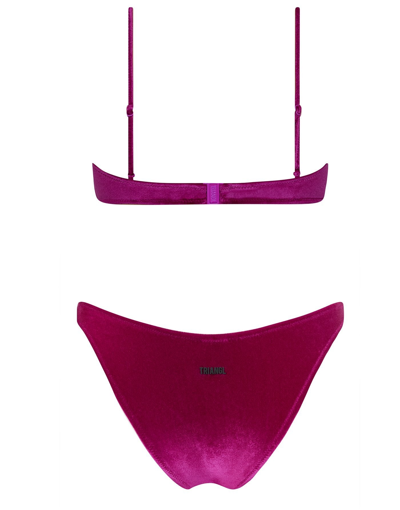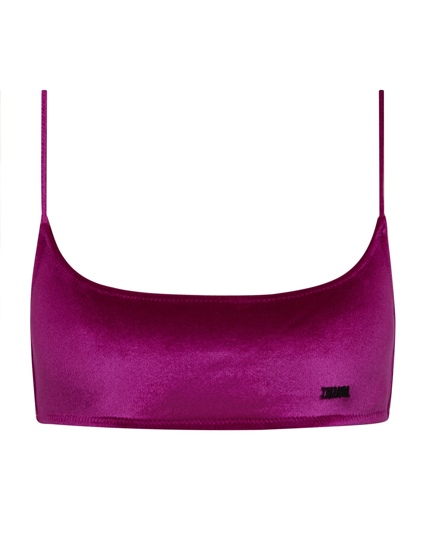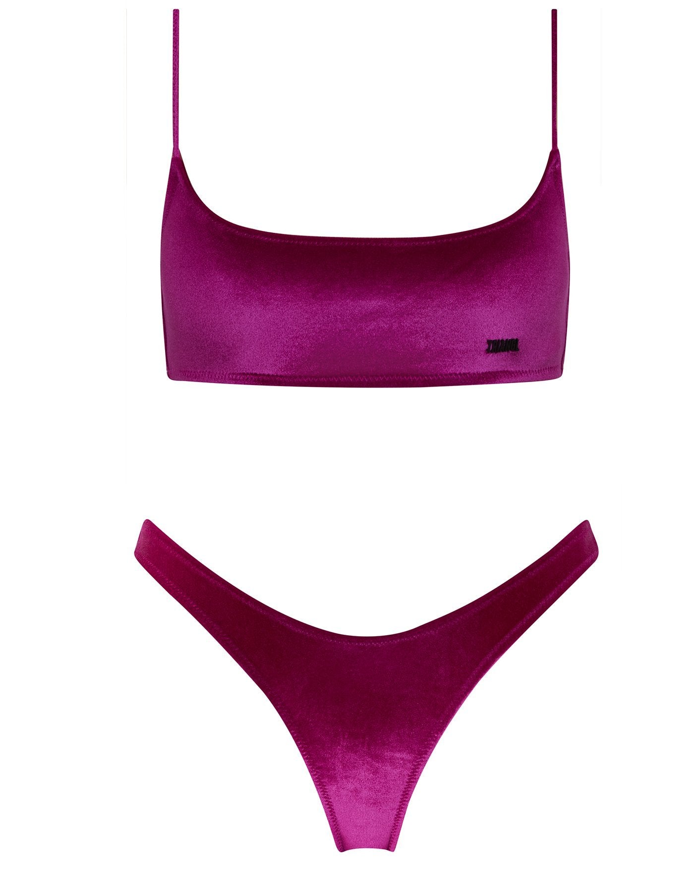 Italian velvet scoop crop bikini in purple plum. Strappy crop top with a wider front, matched with high waist bottoms. Choose from either a cheeky bottom or normal bottom for a little more coverage.  Super soft Italian velvet designed specifically for swim. This bikini also comes with a matching belt bag.